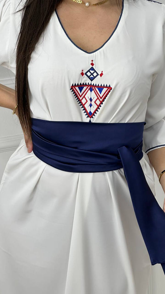 Robe berbère blanche brodée avec ceinture