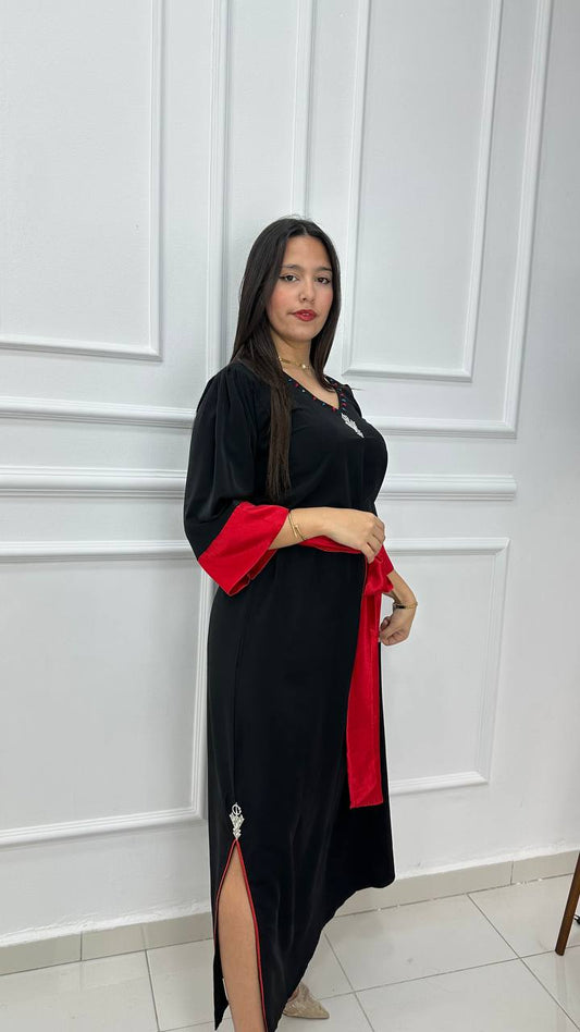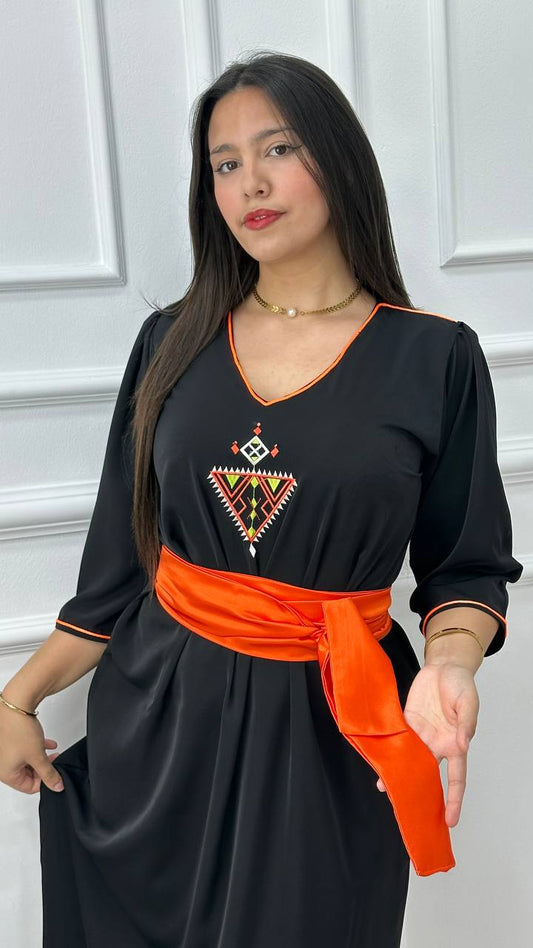 Robe berbère noir brodée avec ceinture